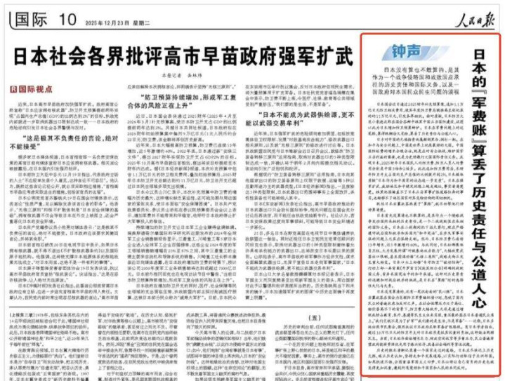 12月23日金牛呗,人民日报第10版刊发“钟声”评论文章《日本的“军费账”算丢了历史责任与公道人心》。